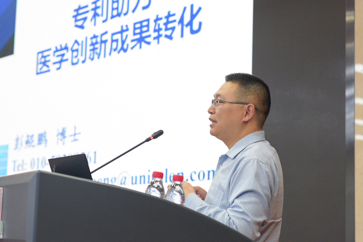 彭鯤鵬博士憑借其深厚的專業(yè)知識和豐富的實(shí)踐經(jīng)驗(yàn),在講座中發(fā)表了精彩的主題演講。演講圍繞 “專利助力醫(yī)學(xué)創(chuàng)新成果轉(zhuǎn)化” 展開,彭鯤鵬博士深入剖析了國外醫(yī)學(xué)創(chuàng)新成果轉(zhuǎn)化的成功經(jīng)驗(yàn),如經(jīng)皮冠脈介入術(shù)、球囊擴(kuò)張支架等技術(shù)的創(chuàng)新歷程,以及腫瘤免疫治療領(lǐng)域的成果轉(zhuǎn)化模式,讓參會人員深刻認(rèn)識到專利在醫(yī)學(xué)創(chuàng)新成果轉(zhuǎn)化中的關(guān)鍵作用。