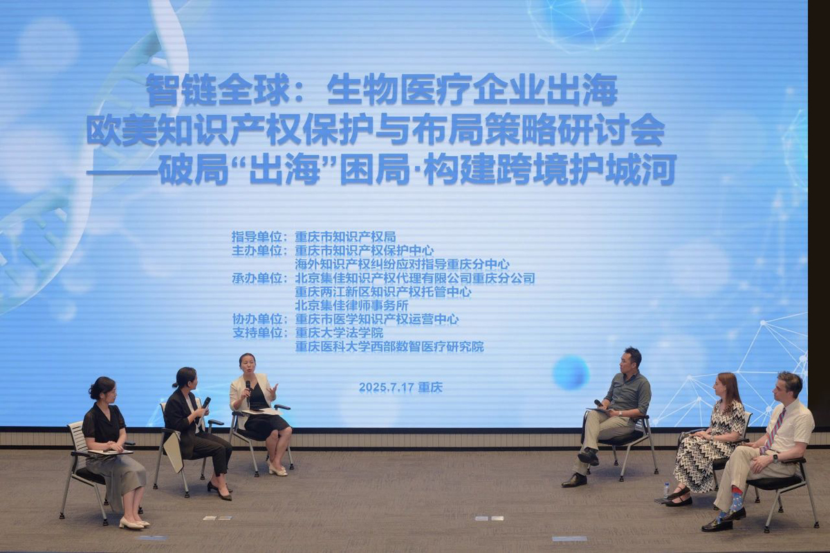 2025年7月17日,由重慶市知識(shí)產(chǎn)權(quán)保護(hù)中心、海外知識(shí)產(chǎn)權(quán)糾紛應(yīng)對(duì)指導(dǎo)重慶分中心主辦,北京集佳知識(shí)產(chǎn)權(quán)代理有限公司重慶分公司聯(lián)合重慶兩江新區(qū)知識(shí)產(chǎn)權(quán)托管中心、北京市集佳律師事務(wù)所共同承辦的 “生物醫(yī)療企業(yè)出海歐美知識(shí)產(chǎn)權(quán)保護(hù)與布局策略研討會(huì)” 在渝順利召開。本次會(huì)議特邀歐美頂級(jí)知識(shí)產(chǎn)權(quán)律師及本地專家學(xué)者,聚焦企業(yè)出海痛點(diǎn),為重慶生物醫(yī)療企業(yè)破解歐美知識(shí)產(chǎn)權(quán)壁壘提供專業(yè)指引。